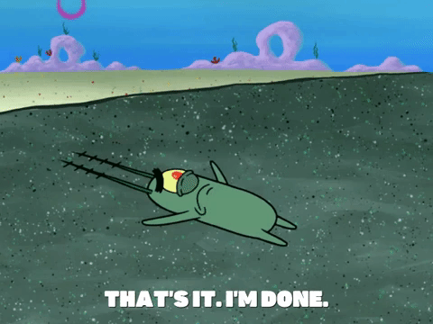 Plankton leži na cesti i čeka autobus da ga pregazi